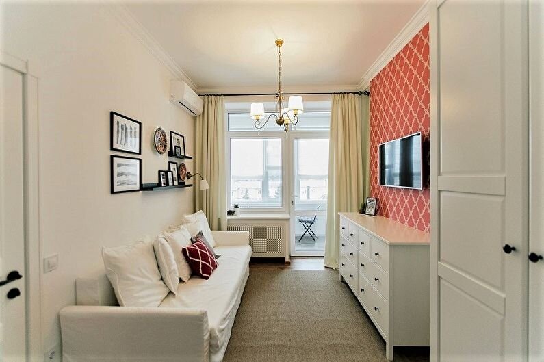 Жить в узкой и длинной комнате — не самый лучший вариант. Но, как говорится, из любого лимона можно как минимум сделать лимонад. Так и из вытянутого прямоугольника, вооружившись парой-тройкой идей и некоторым количеством финансов, можно создать приятное и удобное для жизни пространство, о котором уж точно никто не скажет: кишка какая-то! В первую очередь определимся, какой принцип нам больше по душе: сгладить визуальное впечатление от узкого и длинного помещения, оптимизировать его для жизни или совместить оба подхода. Для того, чтобы ваша комната выглядела шире, чем она есть, хочется применить известные и проверенные решения — например, выкрасить стены светлым. Но в нашей ситуации это не сработает. Впечатление будет сильнее, если только одну длинную стену сделать светлой, а противоположную ей — более яркой, даже контрастной. А если вы не собираетесь вдоль неё ничего ставить, оригинальным решением станут обои с эффектом перспективы или 3D или зеркала — обычные или с рисунком. Поиграт