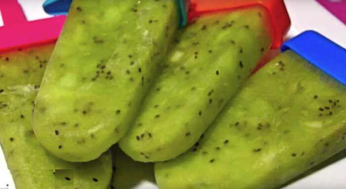 Вы тоже заметили, что в этом году лето особенно агрессивно вступает в сои права? Красный столбик термометра за окном уже давно свободно перешагивает отметку в 30 градусов и уверенно ползет выше. За окнами жарко, жарко, жарко… Вот и настало идеальное время для того, чтобы наконец распечатать купленные год назад формочки для эскимо и начать готовить вкусное, домашнее фруктовое мороженое Не знаю, как вы, а я люблю сочинять новые рецепты фруктового мороженого. В них можно использовать самые разные ингредиенты, комбинировать фруктовые пюре и овощные соки, ягодные сиропы, консервированные компоты… Не говоря уже о том, что веселый и дешевый фруктовый лед так прост в изготовлении. В это время года в продаже имеется огромный выбор свежих фруктов, так что просто отправляйтесь на рынок и купите их. Сегодня я принес из магазина целую гору киви, значит, самое время сделать фруктовое мороженое с киви. Киви - отличный и полезный фрукт. Мороженое с киви - это просто супер-пупер идея, оно обеспечивает