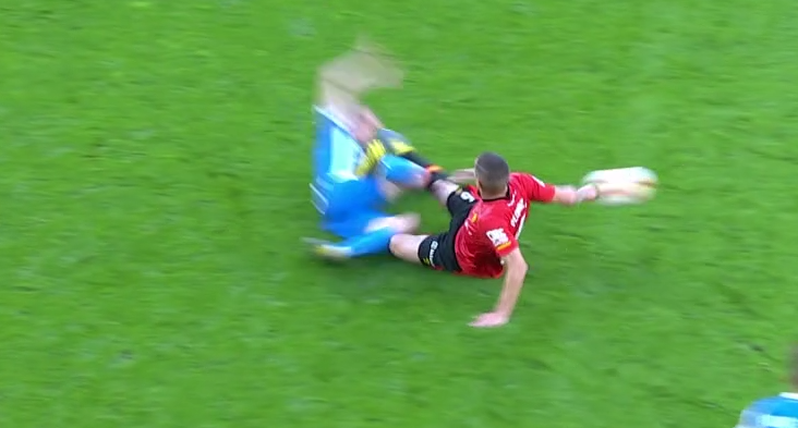 В борьбе за мяч полузащитник гостей Марк Педраса врезался бутсой в лицо хавбеку хозяев Алексу Бергантиньосу. После столкновения первый, увидев окровавленное лицо соперника, сразу же начал сигнализировать о необходимости оказания помощи. Однако арбитр остановил игру не сразу.