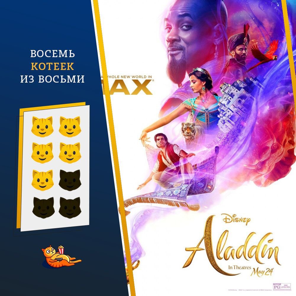 Одно из самых удачных мест для написания котомнения - вторая полка второго купе в вагоне 22 поезда 108. 12 часов свободного времени. ⠀ А тем временем прошло уже около месяца с момента просмотра своеобразного ремейка диснеевского хита «Аладдин». ⠀ Для меня довольно резко прошёл период от новостей о запуске проекта до его проката на широких экранах. Не заметила. ⠀ Если о болячках. Это мюзикл. Ориентировочно все же детский мюзикл. А у детей с чтением, будем откровенны, ну такое. Это в свою очередь значит, что да прибудет дубляж музыкальных номеров! ⠀ В фильме присутствуют как хорошо проверенные хиты из мультфильма, так и новые номера. Последние как раз и подкачали. Они резали мой тонкий (возможно отсутствующий) слух своей немелодичностью. Было тяжело и мучительно. ⠀ При просмотре также были странное чувство театральности. Это качается декораций. Ты смотришь на замок, но понимаешь, что это павильон с картонными стенами. Не удаётся добиться реалистичности. Возможно, намеренно. ⠀ Дисней = фа