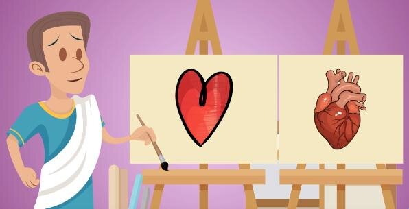 Но если всё таки повнимательнее приглядеться к анатомическому сердцу, то можно увидеть некое небольшое сходство его с тем сердечком, которое мы так привыкли рисовать. Несмотря на свой грубоватый вид со множеством переплетением между собой сосудов, этот орган является главнейшей метафорой любви.