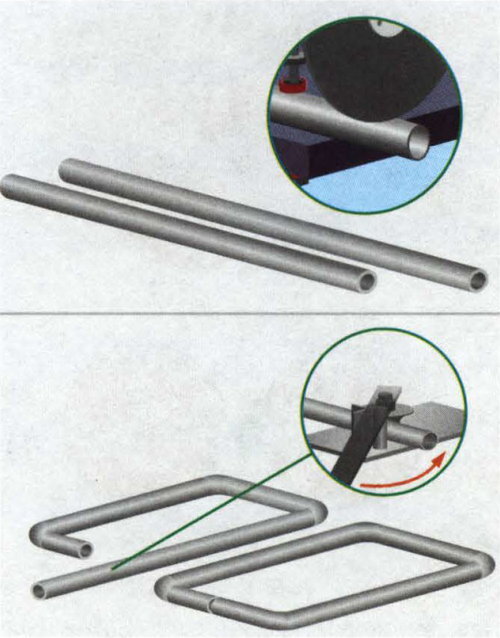 Рассмотрим вариант изготовления складной табуретки из гнутых труб без применения соединительных фитингов. Инструменты и материалы для работы: карандаш, рулетка, болгарка или углорез, трубогиб, дрель, иголка с ниткой, напильник или наждачная бумага. Как сделать раскладную табуретку из металлических труб Нарезаем два куска трубы длиной 1800 мм. При помощи трубогиба сгибаем две рамки так, чтобы одна входила в другую. Далее вставляем одну рамку в другую, отмечаем середины. Сверлим отверстия и соединяем их шпилькой, проложив шайбы. Чтобы заусенцы и острые края труб не рвали ткань, места стыков стачиваем напильником и обматываем изолентой. Затем один край брезента заворачиваем на трубу и прошиваем вручную. То же проделываем со вторым краем брезента. В завершении складываем табурет и храним до востребования.