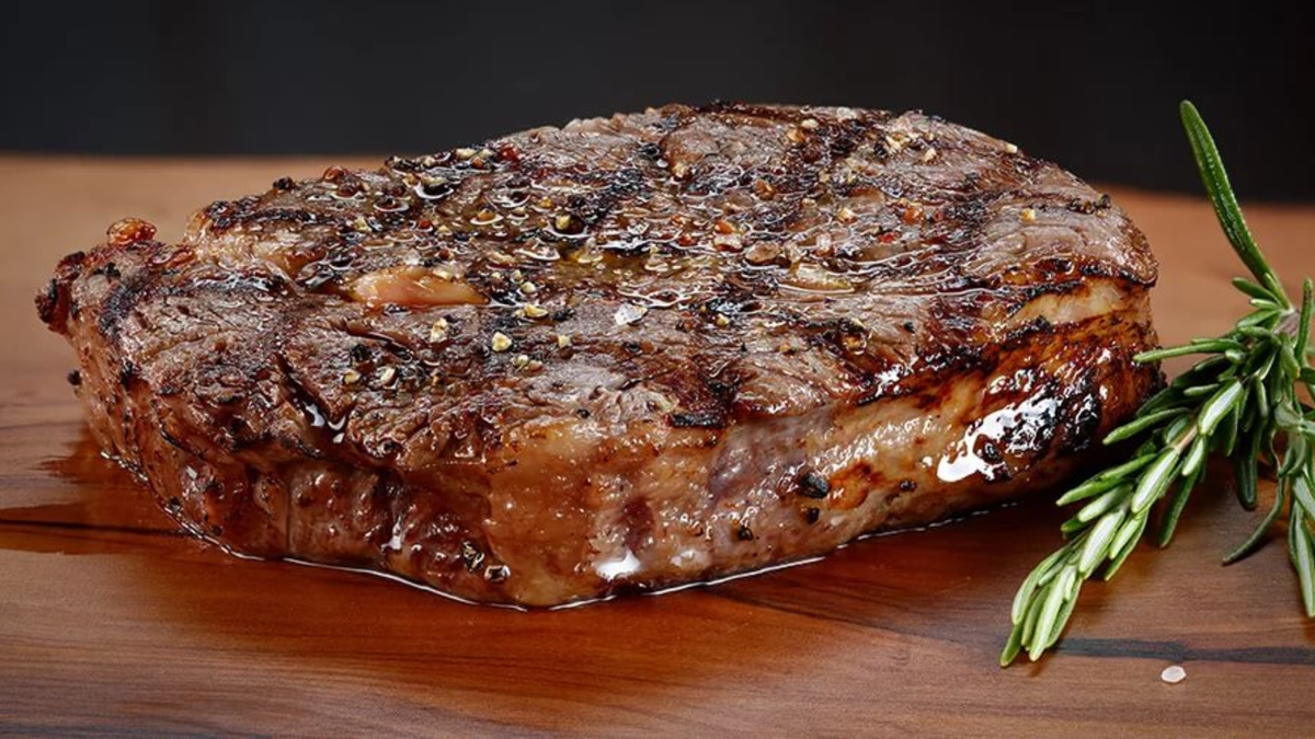 Добрый день друзья, есть очень много разновидностей говядины с разной степенью мраморности, сегодня я выбрал рибай ( толстый край, расположенный на спиной части ), беру кусок примерно 300 грамм, многие говорят что можно солить рибай перед жаркой, кто то говорит что нельзя, на самом деле я Считаю что нельзя. Проведу простой пример, возьмём два кусочка мяса и посолим мелкой солью а второй оставим как есть и оставим мясо ну примерно на час, вы увидите что через время из соленного куска начнёт выделятся сок, а со вторым ничего не произойдёт, так как соль впитывает влагу если не верите можете оба куска мяса подарить и вы убедитесь что один будет более сочный чем второй. И так начнём готовить наш стейк «рибай» смазываем кусок мяса оливковым маслом ( если вы хотите можете взять пару веточек свежего розмарина или тимьяна и добавить в масло ), берём гриль сковороду или жарим на гриле или решетке на углях, я предпочитаю угли, я готовлю свою любимую прожарку «медиум» для этого мясо я переворачива