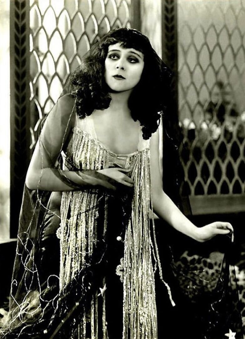 Есть какая-то особенная атмосфера в черно-белом немом кино. Удивительно, что герои своей игрой, жестами, мимикой говорят нам больше, чем словами. Поэтому в немом кинематографе так важен целостный яркий образ героя или героини. В начале XX века в разных странах мира появляются свои звезды топ-уровня, которых боготворили и называли секс-символами эпохи. Кто же они? Предлагаю вспомнить их сегодня! Теда Бара Теодосия Барр Гудман - американская звезда и первый секс-символ немого кино. Её карьера как взлетела, так и сошла нет весьма стремительно. Она снималась с 1915 по 1920 годы и была одной из самых популярных актрис своего времени. Именно ей приписывают формирование на экране уже классического образа женщины-вамп, который позднее разовьет Пола Негри. Своё успех она снискала после знакомства с режиссёром Фрэнком Пауэллом в 1914 году, который был ей очарован и снял её в роли Вампирши в фильме "Жил-был дурак", где она играет женщину, которая совращает мужчин и, бросая, уничтожает их жиз