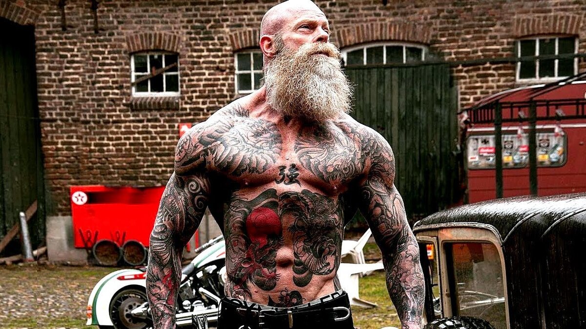 1. Хуан Рикерс Этого бородатого старичка, похожего на сурового викинга, зовут Хуан Рикерс. В свои 55 года Хуан является моделью компании GymKiller, а также проводит тренировки для людей с растройствами психики. Помимо занятий фитнесом у Хуана есть ещё два увлечения – байки и татуировки. Причем последнее очень явное: количество татуировок и их площадь на теле просто огромна. 2. Йенс Далсгаард Этот чувак имеет бешеную популярность в Интернете. А всё благодаря своему неповторимому, устрашающему и дерзкому виду, который он создал, занимаясь культуризмом и набивая многочисленные тату, где только можно на своём теле. Йенс получил прозвище «Зверь». Ну ещё бы, при таких параметрах – вес 130 кг, рост 177 см, калорийность питания - 5500 калорий – и при таком количестве татуировок – на его теле их более 40. 3. Сергей Бадюк Сергей Бадюк известен как ведущий нескольких передач о спорте на разных телеканалах, YouTube-блогер, а также популяризатор здорового образа жизни в самом широком смысле