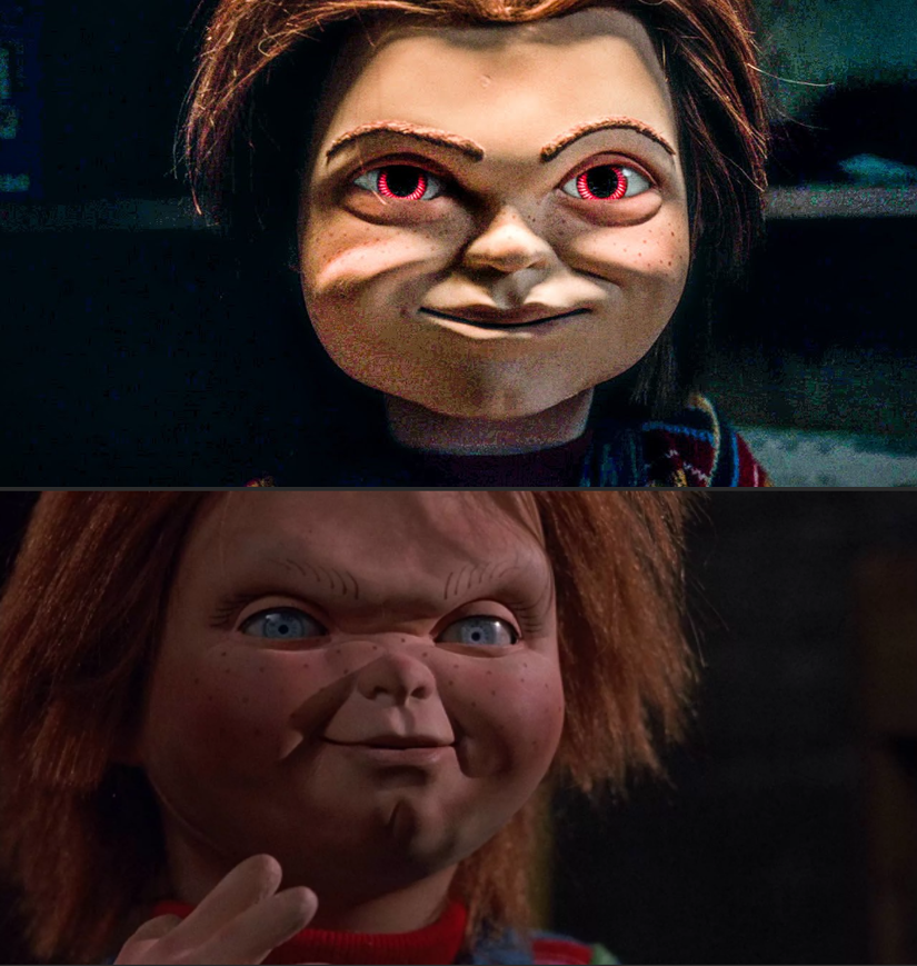 По началу, увидев трейлер, я вообще подумал, что кукла анимированная. Но не переживайте, кукла настоящая. В целом изменения не пошли на пользу. Так же все портит озвучка. В старых фильмах у Чаки был суровый голос Чарльза, от которого уже было жутковато. В новом фильме у Чаки в дубляже обычный немного писклявый голос от которого больше смешно, чем страшно. В оригинале голос Чаки принадлежит Марку Хэмилу, так что это скорее недостаток дубляжа а не самого фильма. Так же осталось загадкой почему именно эту куклу зовут Чаки. По крайней мере я не заметил отсылки. Возможно так ее назвал механик, который сбросил протоколы безопасности.