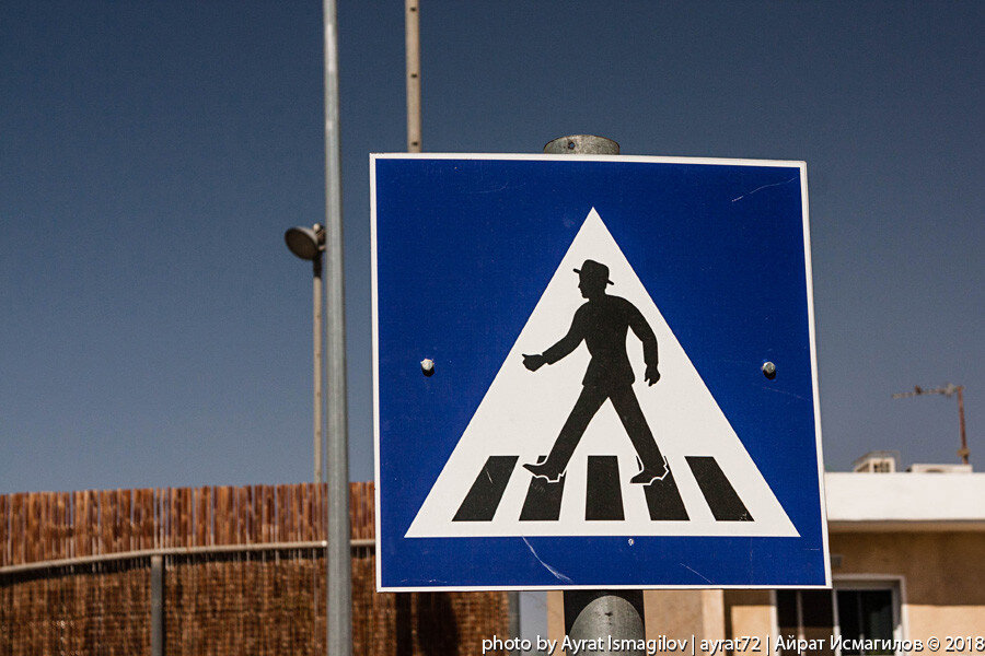 Весь смысл кроется в деталях. Они очень многое расскажут о месте и о людях, проживающих в этих краях. Стоит заметить только одну деталь, сразу прочитываются остальные. У пешехода, например, в первую очередь замечаешь шляпу, привычную деталь мужского гардероба, но непривычную для дорожного знака. Зацепившись взглядом за эту деталь, оглядываешь всего человека и понимаешь, что он вообще четкий чувак. Пиджачок по фигуре. Каблучок на ботиночках присутствует. А еще очень часто самое интересное лежит под ногами. Я особо не коллекционер фоток канализационных люков, хоть и фотографирую их периодически. На них порой бывает любопытная информация. На иврите я не читаю, но тем интереснее пофантазировать над смыслом картинок. Чем, собственно, можете позаниматься и вы. Я не буду озвучивать свои версии. Замечу лишь, что в этом случае люди уже в кепках. На улицах Эйлата, особенно вдоль побережья, много скульптур рыб. Обычно они цветные, добрые и молчаливые. А этот представитель не такой как все. Распи