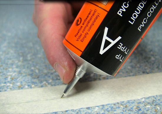 Если Ваше помещение шире линолеума, то придется проклеивать и стыковать несколько полотен линолеума. Лучше, конечно, купить линолеум, подходящий по размеру полу, но так не всегда получается. Расстраиваться не нужно! Мы вам расскажем о способах соединения кусков линолеума. Самое простое - соединить линолеум при помощи порожков. Бывают они пластиковые или металлические. Склеить линолеум ими конечно не получится, но плотно прижать края к основанию они способны. Порожки применяются в местах соединений комнат, на изгибах периметра помещения. Недостаток такого способа - цветовая гамма порогов будет слегка отличаться от линолеума и немного выступать над его поверхностью. Некоторые предлагают воспользоваться скотчем для склеивания линолеума. Просто и недорого, но это временно. Идеальный стык скотч не сможет долго удерживать, а со временем, под действием натяжения и пыли, вовсе разойдется. Самый распространенный способ склейки кусков линолеума - клей, или холодная сварка. Можно купить клей