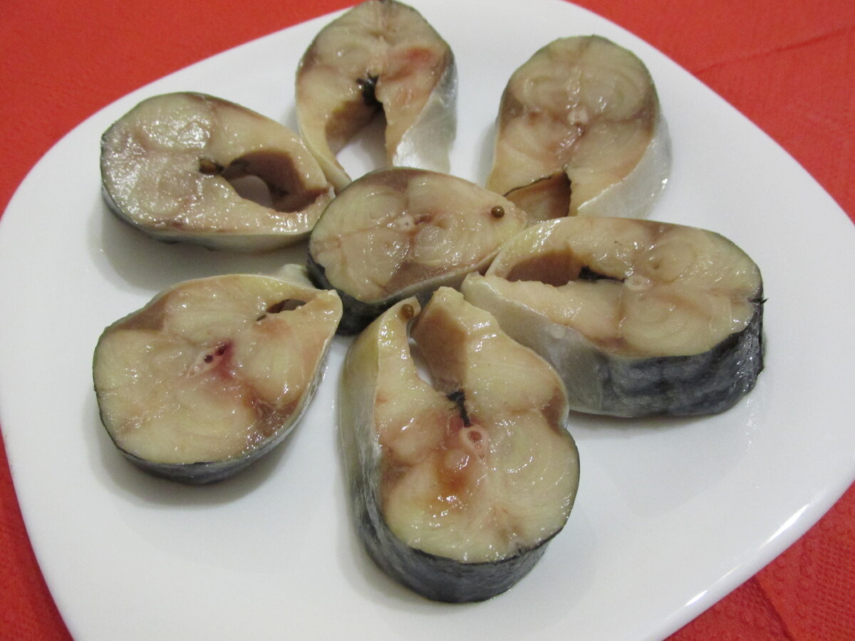 Скумбрия является невероятно полезной рыбой, которая содержит фосфор, йод, натрий, хром, витамины группы В и ненасыщенные жирные кислоты. Кроме того, она еще и очень вкусная. Те, кто любит соленую рыбка, наверняка уже знакомы с ней. Соленая скумбрия может стать не только прекрасным дополнением к картошечке, но и использоваться для приготовления салатов и просто в качестве закуски. А чтобы быть уверенным не только в отменном вкусе, но и качестве соленой рыбки, предлагаю засолить ее самостоятельно. Делается это легко и просто, а результат вас порадует. Чтобы приготовить соленую скумбрию я взяла такие продукты: · 1 тушку скумбрии; · 500 мл охлажденной кипяченой воды; · 2 столовые ложки поваренной соли без горки; · 1 столовая ложка сахарного песка; · 5 зернышек черного перца горошком и столько же зернышек душистого перца; · Несколько лавровых листочков. Процесс приготовления соленой скумбрии: Для начала рыбную тушку нужно подготовить к засолке. Для этого, я обрезала голову и удалила в