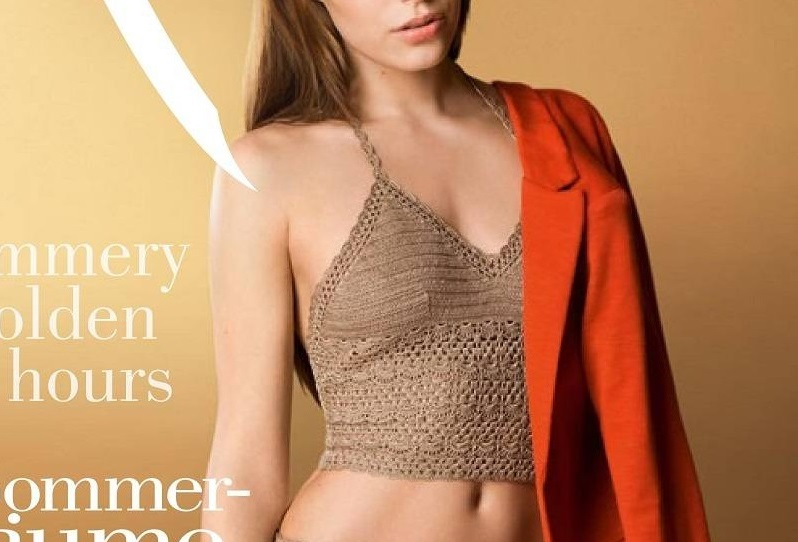 Очень яркий короткий топ. Вяжется крючком. На лето - идеально, причем не только на пляж.