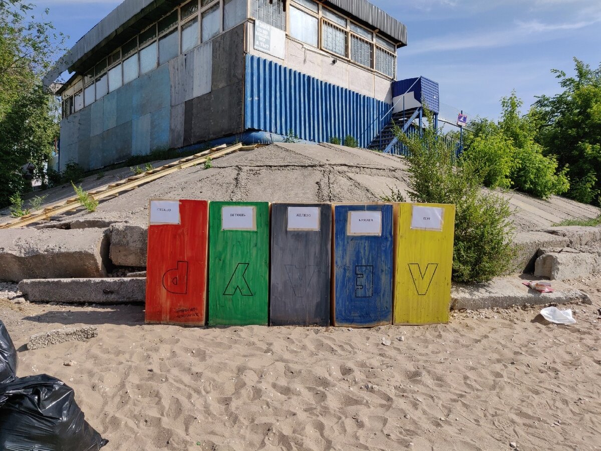 Примерно, две недели назад при помощи наших партнеров и эксперта по РСО - Сергея Валентиновича, мы привезли и установили баки под РСО. Естественно мы уведомили об установке контейнеров департамент. Помогали нам их устанавливать обычные люди, которые ожидали переправы на другой берег. Конечно, мало кто из помогающих верил, что баки устоят даже неделю... Нам предлагали их связать цепями, и вообще сказали, что их пустят на шашлык или увезут на тот берег. Но нет, эксперимент удался. Вчера мы их опустошили и поняли, что жители готовы учиться сортировать мусор!