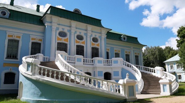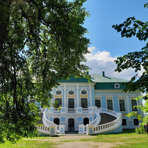 Усадьба не всегда была такой красавицей, которой встретила нас сейчас. И революция, и войны грубо прошлись по ее судьбе. После революции из нее было вывезено много ценностей, картин и книг; во время войны квартировали немецкие воины, а после ВОВ она и вовсе пришла в упадок: на зданиях не было крыш, да и кирпичи из кладки понемногу расходились среди жителей. Еще и пожар 1954 года внес свою печальную лепту в упадок усадьбы. Именно после приезда в 1967 году в Хмелиту знаменитого реставратора Петра Дмитриевича Барановскоого, который занимался недалеко реставрацией Церкви Одигитрии, усадьба была признана памятником архитектуры и начались реставрационные работы. 1753 - год постройки дома и по меркам того времени это не жилой дом, а всего лишь загородная дача для средней по своему достатку дворянской семьи. Дом считался не большим и был рассчитан на комфортное проживание максимум шести человек. Нижний этаж - это подсобные помещения, а 14 комнат второго этажа - помещения для проживания господ. Конечно же, усадьба принимала немало гостей. Это были самые лучшие дворянские фамилии того времени: Шереметевы Нарышкины Уваровы, Одоевские Васильчиковы Нахимовы и т.д. Для проживания гостей был отдельный флигель.