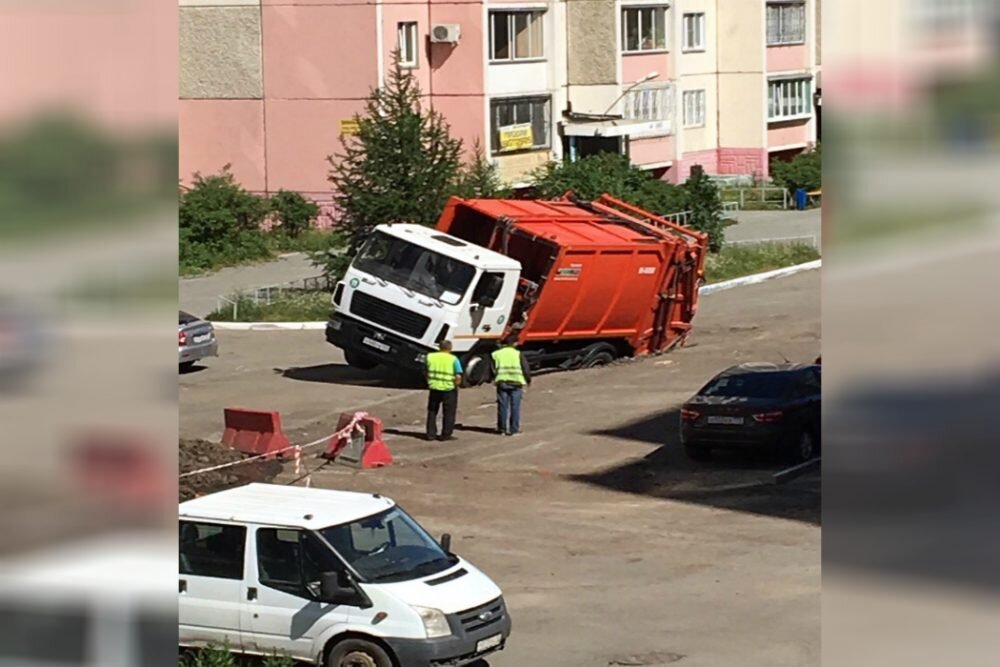 Вчера, челябинцы стали очевидцами того, как большегруз ушел под землю. Водитель мусоровоза сам не ожидал такого исхода. Жители сообщают, что поначалу машина была просто припаркована, но в какой-то момент начала утопать, словно в зыбучих песках.