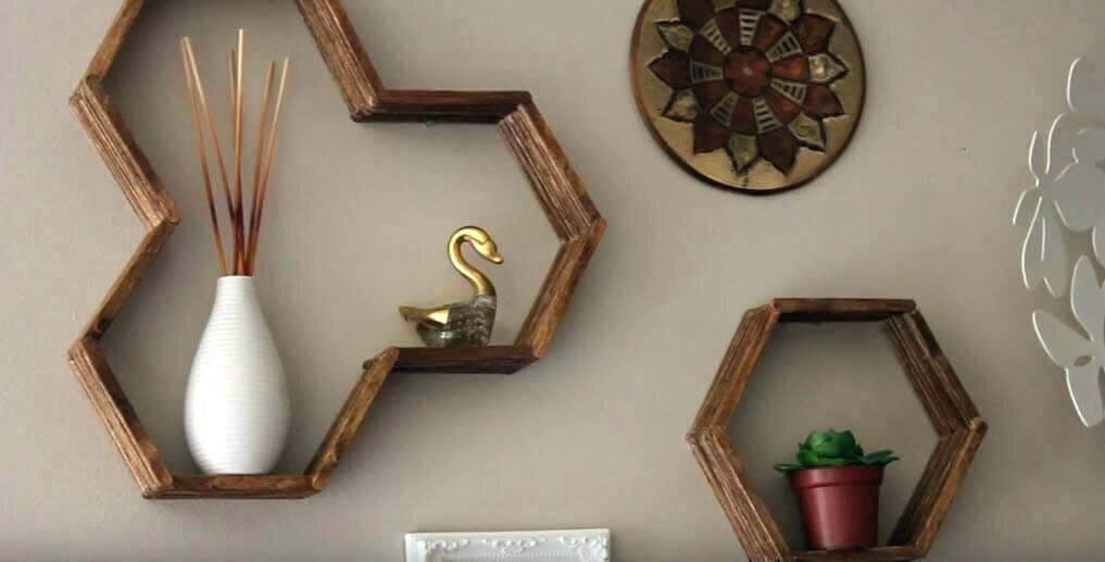 Ни за что бы не догадалась, что это палочки от мороженого! Представляете, это полки-шестиугольники, которые дочка все мечтает повесить в мастерской, оказывается, их сделать можно и своими руками, хорошо, что