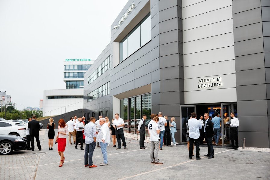 20 июня, в Минске состоялось торжественное открытие обновленного дилерского центра Jaguar Land Rover «Атлант-М Британия». Новое здание оформлено по стандартам дизайн-концепции ARCH, которые глобально внедряются концерном на протяжении последних пяти лет. Двухэтажный дилерский центр вмещает шоу-рум площадью 880 м2, где одновременно выставлено 11 новых автомобилей Jaguar и Land Rover. Среди них – главные новинки компании: первый полностью электрический динамичный кроссовер Jaguar I-PACE и новый Range Rover Evoque, который был представлен первым гостям центра в ходе торжественного открытия. Модель получила ряд революционных решений, среди которых первое в сегменте зеркало заднего вида ClearSight и передовая функция «прозрачного» капота, а также широкий ряд технологий для движения по бездорожью и пакет передовых систем помощи водителю. Рядом со зданием центра, в отдельно стоящем помещении площадью 350 м2, представлены сертифицированные автомобили с пробегом, реализуемые по программе App
