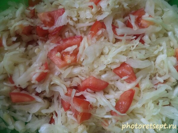 Быстрый салат из капусты Для этого рецепта потребуется совсем не много продуктов, которые обычно, особенно в летний — осенний период, есть в каждом доме. Ингредиенты: Приготовление : Капусту и лук нашинковать тонкой соломкой, посолить и хорошо помять, чтобы она стала мягкая. Помидор нарезать ломтиками, добавить в салат, аккуратно перемешать. При желании можно сдобрить майонезом, хотя он и так вкусный получается.