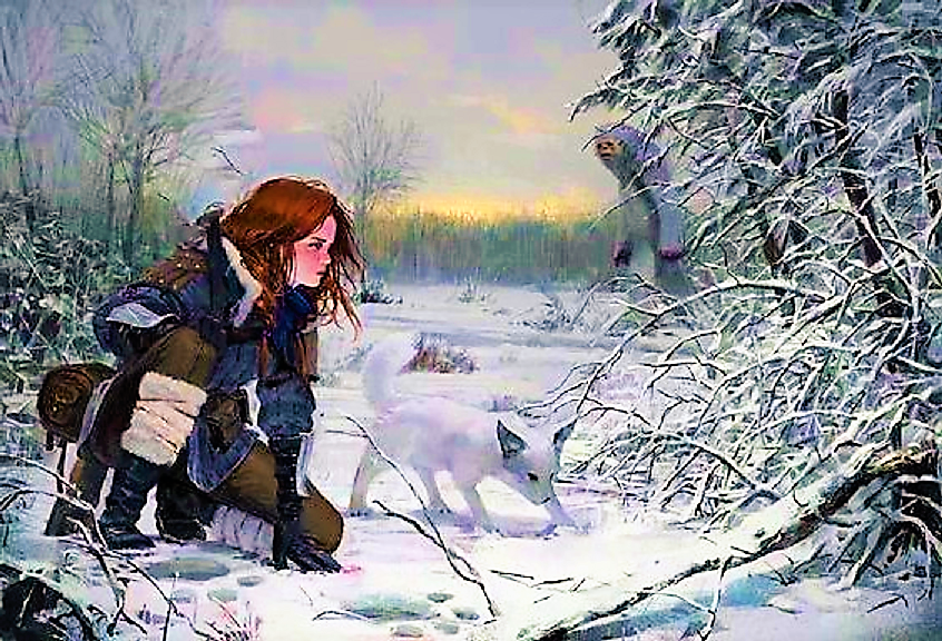 Когда находишь интересную картинку, начинает разыгрываться воображение.. То сказочные мотивы всплывают в памяти, то исторические.. Иногда хочется окунуться в далёкое прошлое.. Например, в Средневековье.. И вот, тогда, воображение рисует, нет, не рисует, оно захлёстывает с головой.. Вот и с этой повестью так же получилось.. Меня несколько картинок отправили в Средневековье, когда в Европе властвовала святая инквизиция.. Окунитесь и Вы, дорогой Читатель, в Мир Средневековья с элементами фэнтези.. *** Юрэ́нка изучала огромные следы, оставленные каким-то странным зверем.. Таких она не встречала в своём родовом лесу никогда.. Маленький Волко́т, которого она случайно нашла у лесного озера, принюхивался к следам, вздыбив на холке шерсть.. Странная была встреча.. Юрэнка склонилась над водой, зачерпнула в ладони воду и умылась.. В отражении она увидела маленькую забавную белую мордочку.. Обернувшись, девушка встретилась взглядом со зверьком, который совмещал в себе признаки маленького волка и б