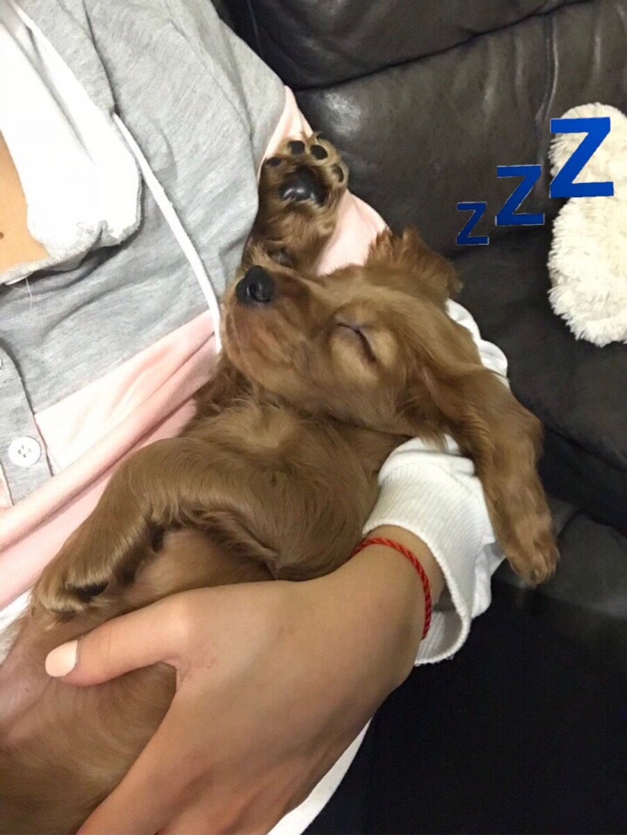 Привет друзья, меня зовут Баки, английский коккер спаниель, и я продолжаю рассказывать вам о своей жизни! Наверняка каждый хоть раз в жизни сталкивался с бессонницей! Вот и я не исключение, то место не достаточно продуваемое, то слишком твердое, то в голову лезут мысли о еде не дающие покоя. Но я нашёл способ как избежать эту проблему. Засыпайте в объятиях любимого человека! У меня есть специальный человек для моего крепкого сна-это мама. На фотографии выше вы можете наглядно оценить, как сладко я сплю в таком положении. Объятия любимого человека помогают успокоиться и быстрее восстановится после тяжелого рабоче дня. Дада, вы не думайте, я тоже целый день выполняю свои сторожевые обязанности и к вечеру просто валюсь с ног от усталости. А ещё ученые доказали, что 5 минут объятий в день повышают иммунитет. Но вполне вероятно, что днём вы просто можете не найти эти 5 минут. Поэтому рекомендую компенсировать это ночью. А как приятно когда утром мама встаёт на работу и старается очень т