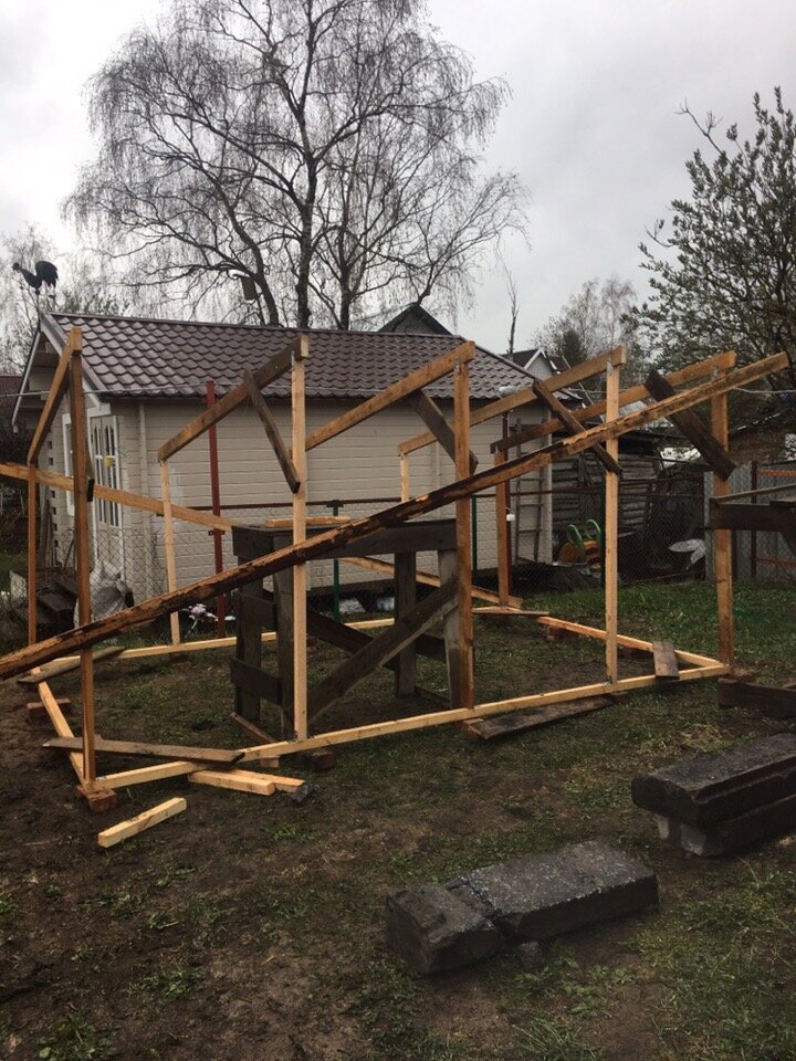 Рад приветствовать на своём канале. Знакомые попросили помочь со строительством теплицы. Нужно было построить теплицу из поликарбоната размером три на четыре метра. Просили сделать максимально дешего. Дабы сэкономить на досках (для каркаса теплицы) решил найти поддоны подходящего размера в фирмах занимающихся производством окон. Купил 13 поддонов за 2800, а так же приобрел брус и крепеж на 700 рублей. Доски поддонов были скреплены на болты, поэтому разобрать их не составило никакого труда. На досках удалось сэкономить около 2тыс рублей. На пропитку и краску ушло 980 рублей. За день был полностью собран и пропитан каркас. Самое сложное - выставить по уровню т.к. работал один и было крайне неудобно. На второй день изготовил дверь, форточки и полностью покрасил каркас теплицы в два слоя. Петли для крепления двери и форточек покупать не пришлось (уже были). Осталось обшить поликарбонатом. Просмотрели по ценам: нужное количество поликарбоната стоит от 5тыс до 7 тыс. Знакомые сказали приобр