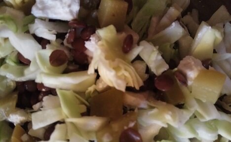 Вкусный салат с чечевицей, капустой, фетой и огурцами