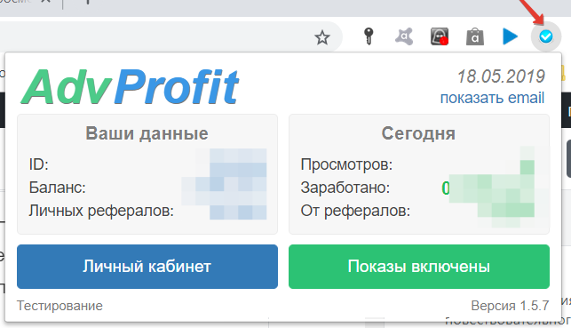 В наш 21 век почти в каждой семье есть компьютер или ноутбук,а в некоторых и несколько.Имея такие инструменты можно неплохо заработать в интернете.Заработок на расширениях - проверенный и стабильный заработок,простой и не требует никаких вложений.Нужен только компьютер и телефон. Устанавливаете расширение в ваш браузер и получаете вознаграждение за просмотр рекламы.Установить на один браузер можно несколько расширений,но перебарщивать не стоит. Саму рекламу вы можете и не смотреть,но окошечко с рекламой выскакивать будет.Поэтому если вас заинтересовал этот заработок,то вам надо зайти в настройки и поставить галочку-«разрешить показывать рекламу». ВОТ НЕКОТОРЫЕ : AdvProfit не создает дополнительных блоков, а лишь заменяет уже существующую рекламу,если вы заходите на другой сайт. Перейти>>>