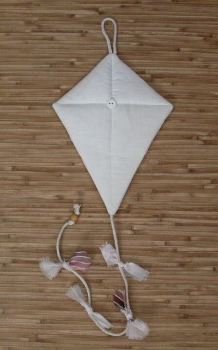Доброго времени, дорогие рукодельницы, и все, им симпатизирующие! Сегодняшний мастер-класс я хочу посвятить изготовлению миниатюрного текстильного змея. Он может стать отличным украшением детской комнаты. Сшить его довольно просто. Да и материалы для его изготовления найдутся у любой мамы-рукодельницы. Форма и размеры воздушного змея могут быть любыми, — всё зависит от фантазии и возможностей мастерицы. В рассматриваемом случае размер змея по высоте не превышает альбомного листа. Поэтому для изготовления понадобятся: Натуральный неотбеленный лён, размером с лист формата А3. Синтепон плотностью 200 г на м кв., размером с лист формата А3. Верёвка бельевая льняная, диаметром 5 мм, длиной 65 см. Деревянная бусина диаметром 1,5 см, с большим отверстием. Деревянная пуговица диаметром 1,2 см. Кусочки хлопковой ткани. Швейная машинка. Булавки. Ножницы. Нитки для шитья. Игла для ручного шитья. Линейка. Мел портновский или исчезающий маркер. Шаг 1. Из предварительно проутюженного льна следует вы