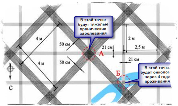 Одним словом, если суметь определить места пересечений в сетке Хартмана, то у нас получится таким образом найти геопатогенные и геоаномальные места у себя в доме, на участке и т.д. Почему это так важно?