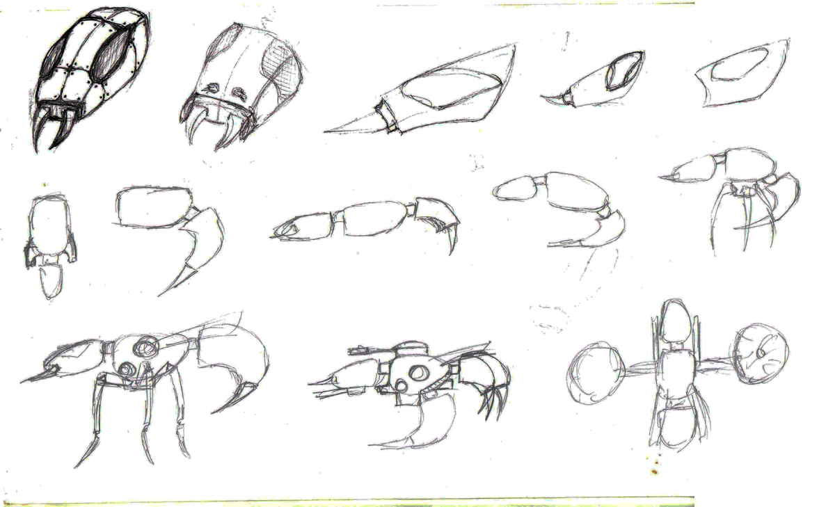 Назовем ее просто Оса(Wasp). В итоге она будет иметь кодовое название боевой машины, но пока так удобнее и практичнее. Это первая модель для игры, а так же самая важная, так как в жанре кооператив или сингл( то есть один или несколько игроков) именно за рулем этой самой осы и будет сидеть игрок удаленно за своим компьютером) Создавалась она долго и сложно под конструктивной критикой геймдизайнера. Создавалась практически без концептов(на глаз). Кстати о концептах, вот они все что есть): Наверняка профессионал сказал бы что такую модель раз плюнуть сделать, но это кому как! Итак поехали созерцать процесс создания самой первой модели проекта «Steel Swarm» да действительно для людей незнакомых с 3д графикой сложно предположить что я тут вообще за картинки выкладываю) но скоро все встанет на свои места) Если сейчас взглянуть на скетчи в самом вверху легко понять что тут за «артхаус» происходит)! Вот так медленно но верно модель приобретала все нужные ей для жизнедеятельности компо