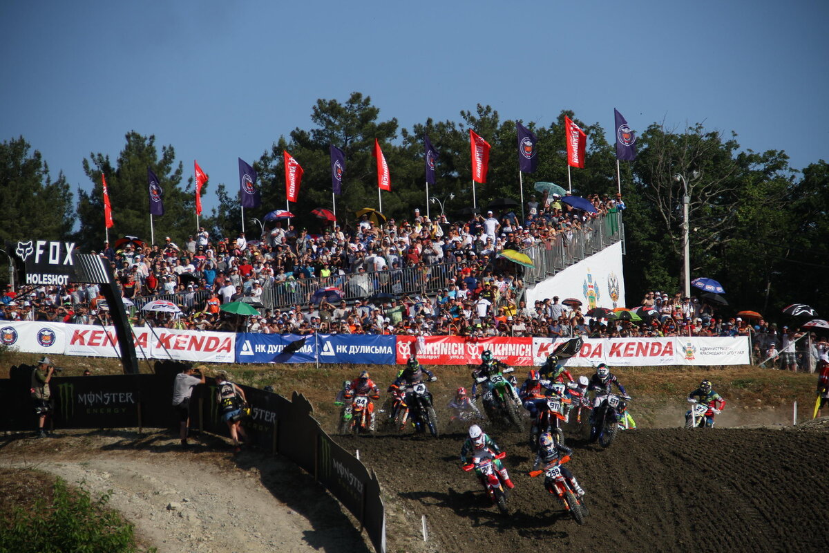 В Краснодарском крае на трассе детского центра «Орлёнок» прошёл российский этап чемпионата мира по мотокроссу – PATRON MXGP of Russia. Почти 100 лучших мотокроссменов из 27 стран мира приняли участие в этом масштабном событии, которому не помешала даже жара под 40 градусов. Тяжёлая трасса и экстремальная погода сделали своё дело – не все спортсмены добрались до финиша в своих зачётных классах. Репортаж "Первого канала" перед стартом финального дня Гран-При России: Ошибок не избежали даже фавориты: так потерял лидерство в чемпионате многократный чемпион мира по мотокроссу итальянец Антонио Кайроли, который по сумме двух заездов финишировал только восьмым, а бельгиец Клемент Десаль, два года подряд выигрывавший российский Гран-При вообще не добрался до финиша. Увы, выбыли из гонки и два из четырёх российских пилота топ-класса MXGP: Евгений Бобрышев получил травму ноги после падения, а Артёма Гурьева выбил с трассы соперник, причём произошло это прямо в воздухе после прыжка. Зато атлет