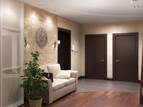 Двери также в классическом представлении должны быть темнее стены, чтобы концентрировать на себе внимание. Так человеку легче визуально их отыскать, что особенно важно в моменты быстрого перемещения по квартире. Возможен, конечно, и светлый их тон, но в этом случае, опять же, стена должна быть или темнее или быть неоднородной по цвету, чтобы дверной проем обязательно выделялся на общем фоне.