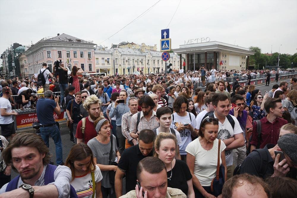 Марш в поддержку журналиста Ивана Голунова. На улицу вышли около 1200 граждан. Более 200 человек уже задержаны.