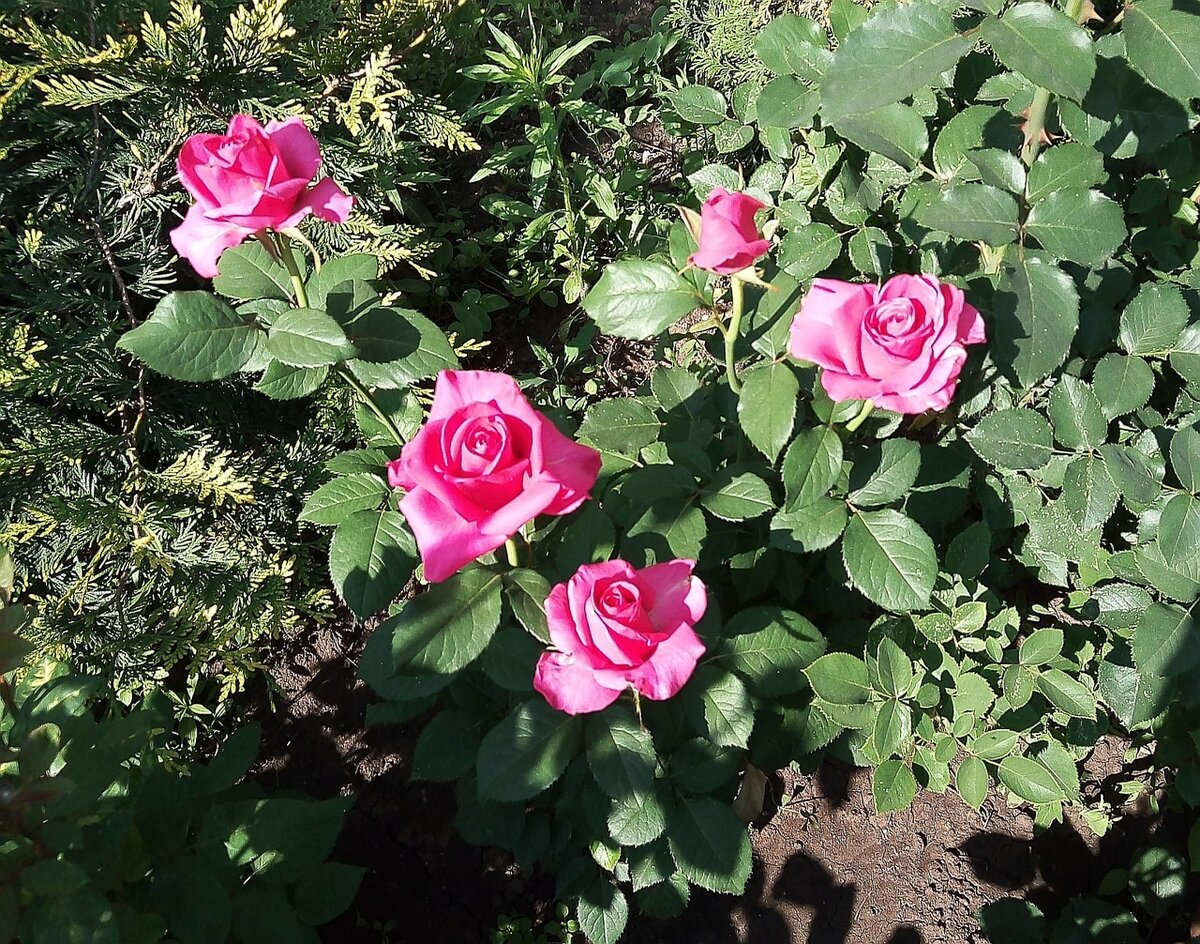 В июне вся природа, все вокруг расцветает. Вот ушла зима, я с волнением разглядывала наш розарий- а какие розы перезимовали благополучно, а какие, вдруг, нет.. Благо, все цветы перенесли зиму хорошо. Я стандартно обрезала сухие и почерневшие за зиму побеги, и по розовым кустам сейчас уже и незаметно, что их обрезали. Я очень старалась превратить наш с мужем закрытый дворик в райский уголок. Я всегда восхищаюсь людьми, у которых и сухая палка вырастет и зацветет, которые умеют навести красоту на участке! Это такой труд и такая любовь! Розы у нас растут разных сортов: что-то покупал мой муж, а что-то его мама. Розам уже несколько лет, они хорошо и крепко прижились и вот уже второе лето радуют меня ярким пышным цветением. Единственная пока проблема с ними- тля. С ней я борюсь как могу. И, вроде, даже успешно! ) В этом году нашествие тли уже было, я опрыскала розы препаратом, тля подохла, потом прошел веселый ливень и смыл ее с бутонов окончательно, мне даже об этом и думать не пришлось.