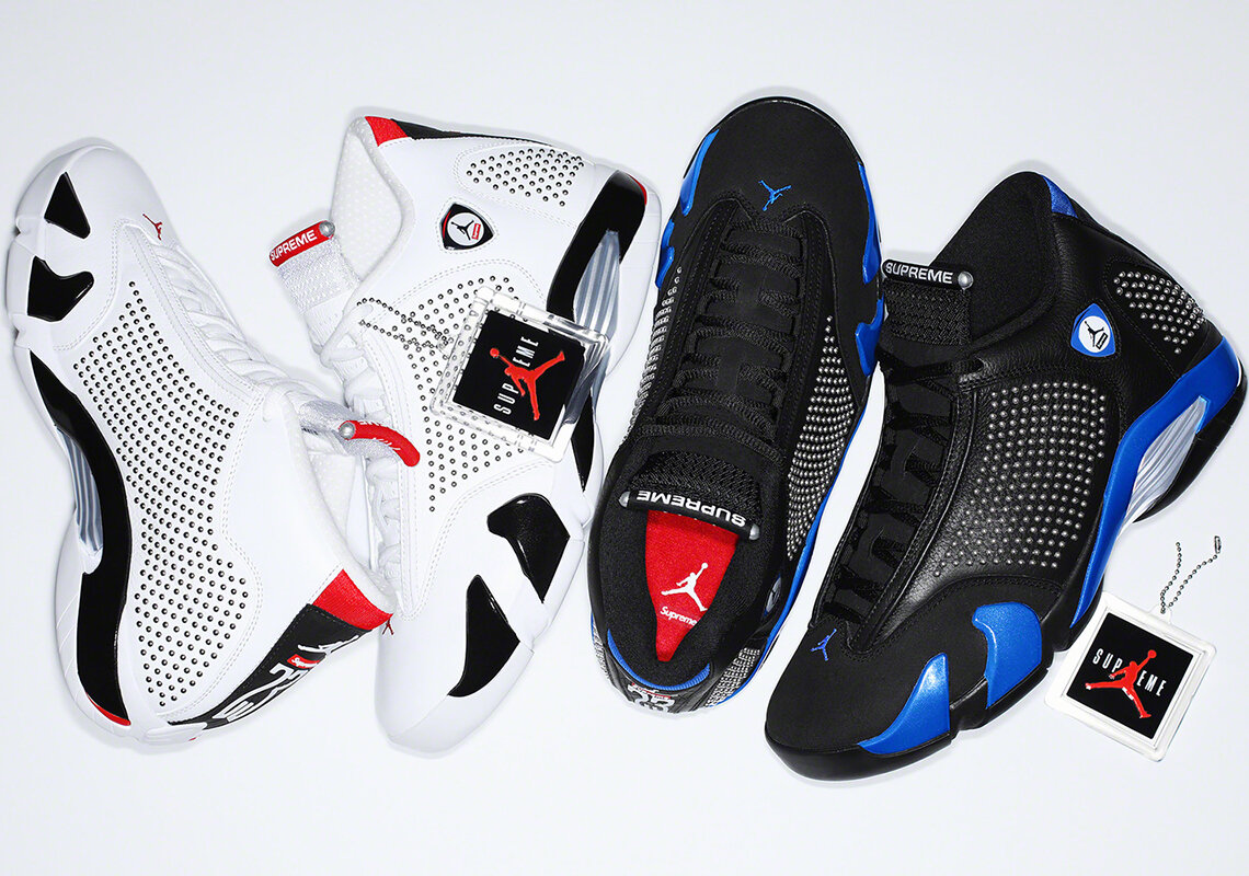 После многочисленных утечек и спекуляций о новых кроссовках их анонсировали официально.Коллаборация бренда стритвира "Supreme" и обуви "Air Jordan" выйдет 13 июня. Дизайн данной пары обуви был вдохновлен давно забытой фотографией Майкла Джордана, на которой он выкрадывался из задней двери тренировочного комплекса "Chicago bulls". Всего у кроссовок будет 2 разных окраса, первый из них будет черным с синими акцентами, а второй - в более классической и привычной для "Air Jordan" расцветке: черный, белый и красный. Данную пару можно будет приобрести в магазине ретейлеров "Supreme",либо на их вебсайте.Также, возможно, их можно будет приобрести на официальном сайте найк Дата релиза: четверг 13 июня. Цена ретейла: 248$