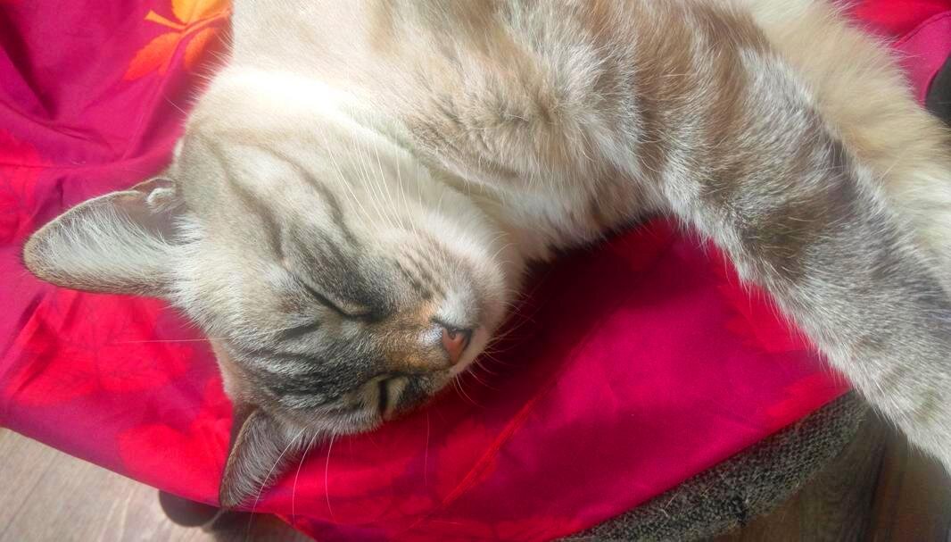 Лето. Солнечное, прохладное после дождя утро. Коты Чернуха и Беляшик, отзавтракав, принимают солнечные ванны. Белка оттеняет себя яркой тканью, с легким налетом осенней ностальгии, Чернуха гармонична на сером и оба идеально смотрятся вместе.