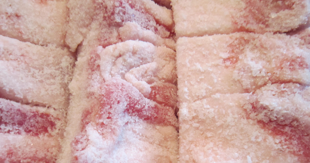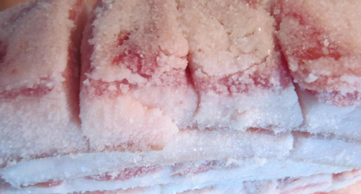 8. Через четыре дня достаем сало, удаляем излишки соли. На хранение сало помещаем в морозилку, хранить такое сало можно месяц.
