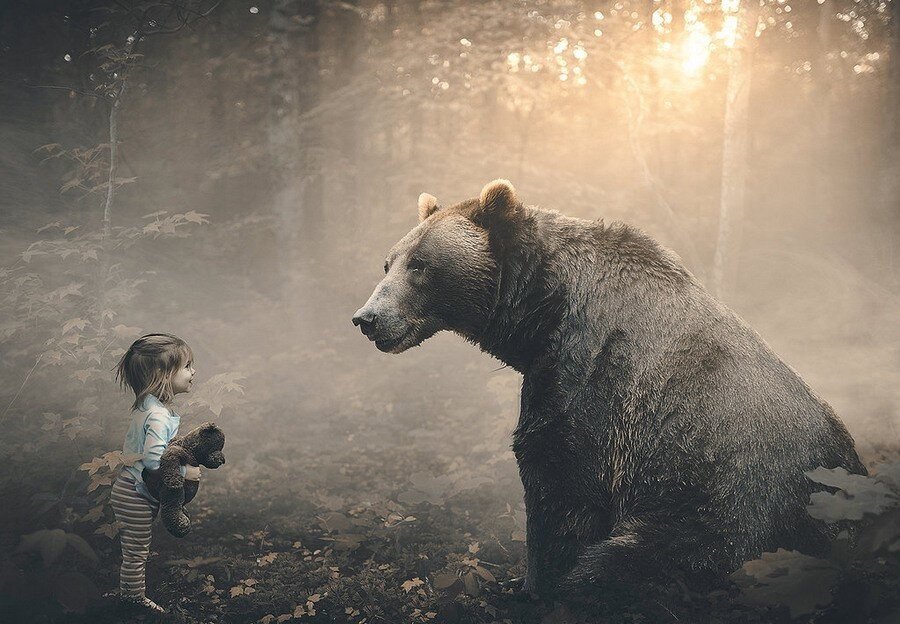 - А мы седого медведя встретим, деда?