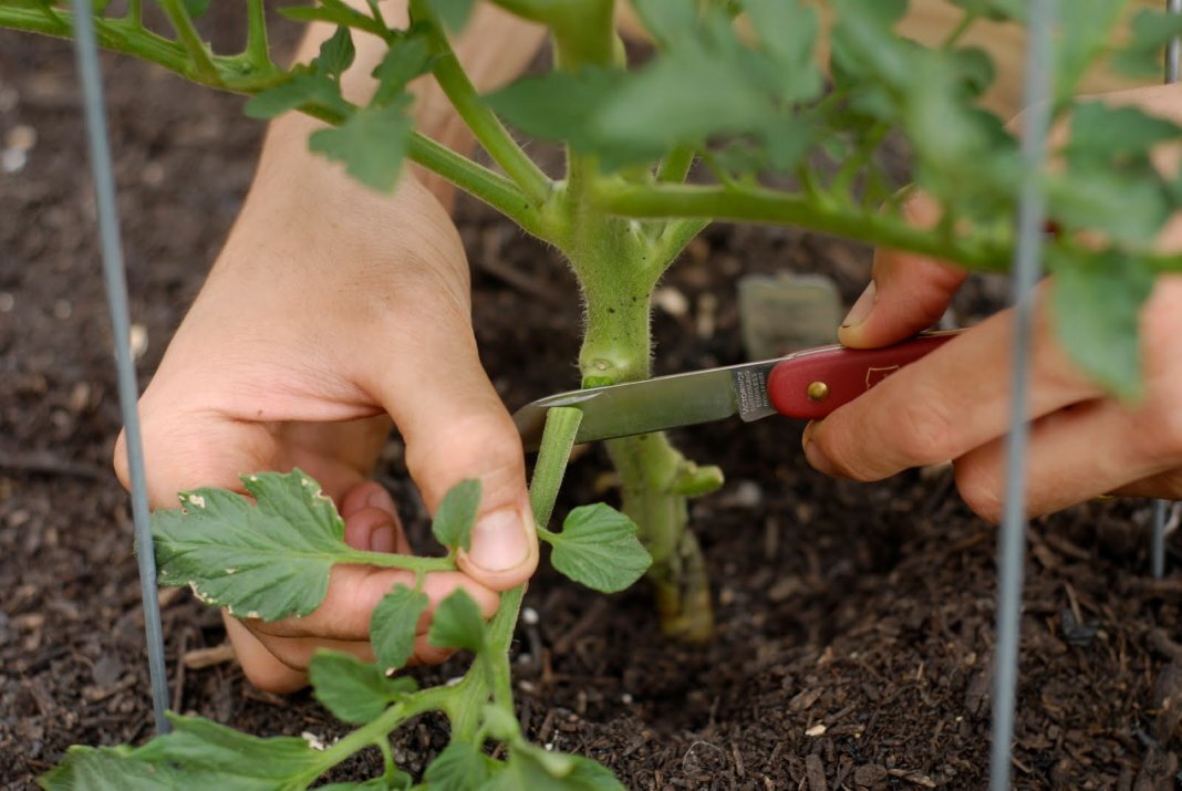 В первую очередь, при высадке рассады на постоянное место убирают семядольные листья, заглубляя сеянцы в землю до их уровня. Одновременно можно оборвать одну или две нижние листовые пластины в тех случаях, когда рассада переросла, а также, если они пожелтели. В дальнейшем проводят регулярную обрезку нижних листьев, особенно, если они контактируют с землей, усыхают, имеют нездоровый вид или признаки болезней. Первый раз мероприятие выполняют, когда завязи на первой кисти существенно увеличились в размерах.