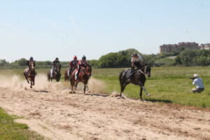 Ближе к 13 часам гости Арского Сабантуя, оставив главный майдан, отправились к ипподрому. В скачках участвовало 25 коней. Комментировал соревнования глава Янга-Салского сельского поселения Айрат Сафин. Скакуны прибыли из Арского, Высокогорского и Пестречинского районов. Большинство из них было из частных хозяйств. Это были кони Рамиля Рахматуллина из Арска, Исмагила Яхина из Старого Айвана, Равиля Ибрагимова из Кысны, Айрата Сафина из Янга-Салы, Наиля Залялетдинова из Кшкара, Расима Шарифуллина, Вильдана Гарифуллина из Куюка, Рафаэля Магсумова из Пшенгера, Ришата Кадырова из Нижних Атов, Ильшата Шакирзянова из Старого Яваша и т.д. Наездниками были сыновья владельцев, соседи, односельчане, одним словом, те, кто ловко управлял конем.
