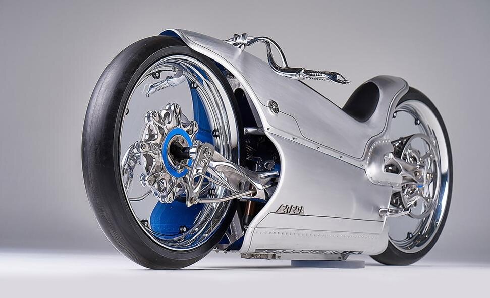 Majestic 1929 года выпуска - один из самых жанровых мотоциклов всех времен. Он не похож ни на один мотоцикл на земле - обтекаемый корпус в стиле Арт-деко, рулевой механизм типа HCS (hub-center steering) и свечная подвеска. Девяносто лет спустя этот французский шедевр все еще вдохновляет кастомайзеров в том числе и Брайана Фуллера (Bryan Fuller), который создал необычную реплику этого мотоцикла под названием «2029». Этот кастом электро мотоцикл является ответом Фуллера на современные тенденции в мото-индустрии. По своей сути искусство кастомайзинга все еще очень похоже на его истоки, - отмечает он, -Отличие лишь в том, что сейчас большую роль в развитии ремесла играют технологии и инновации в дизайне. Majestic 2029 Проще говоря, электро мотоцикл «2029» - это смелый проект новой эры кастомайзинга, предназначение которого подготовить нас к будущему, где возможно всё. Fuller Moto построил «2029» по заказу Haas Moto Museum и Sculpture Gallery. Электро мотоцикл впервые будет показан на Handb