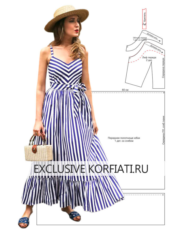 Сарафан — идеальная одежда для лета. Именно поэтому, с наступление жарких дней, мы предлагаем вам выкройку оригинального сарафана на бретелях с длинной юбкой. Легкий летящий силуэт, натуральная хлопчатобумажная ткань и крой, мастерски обыгрывающий сине-белый полосатый принт ткани, делают этот сарафан хитом сезона. Кроить и шить эту модель совсем не сложно, справятся даже начинающие мастерицы. Выкройка сарафана в полоску — в нашем очередном уроке. https://korfiati.ru/2019/06/vykrojka-sarafana-v-polosku/