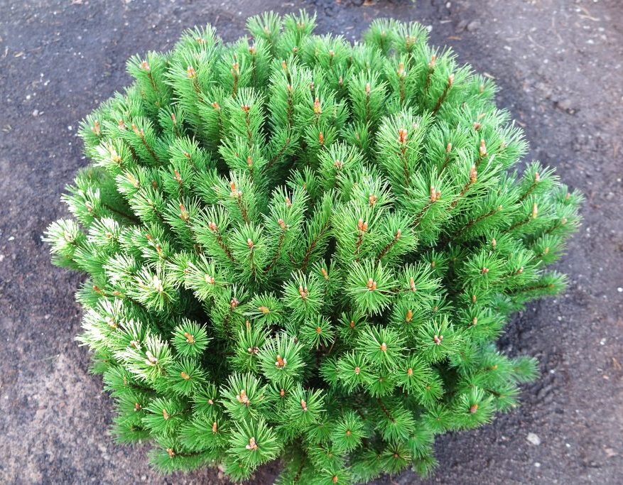 Сосна горная Гном любит солнце и песок Сосна горная Гном – миниатюрный кустарник высотой 2,5 м с темно-зеленой хвоей длиной 4-5 см. Особая ценность растения – его удивительная декоративность и устойчивость к загрязнению воздуха. Этот вид способен жить в полутени, но предпочитает солнечное местоположение. В условиях хорошей освещенности растение демонстрирует свои декоративные качества в полной мере. Кислые песчаные и супесчаные почвы идеальны для сосны горной. На тяжелых землях и участках с высоким стоянием грунтовых вод требуется дренажный слой толщиной не менее 20 см. Стволы растения полуполегающие и восходящие, в течение 10-15 лет они растут одинаково, образуя красивую шарообразную крону диаметром до 1,5 м. После этого срока скорость роста восходящих побегов увеличивается, крона приобретает куполообразные очертания. Если нужно поддерживать шарообразную форму кроны, в начале лета побеги укорачивают на 2-7 см, чтобы стимулировать ветвление. Особенности выращивания Всеволод Рома