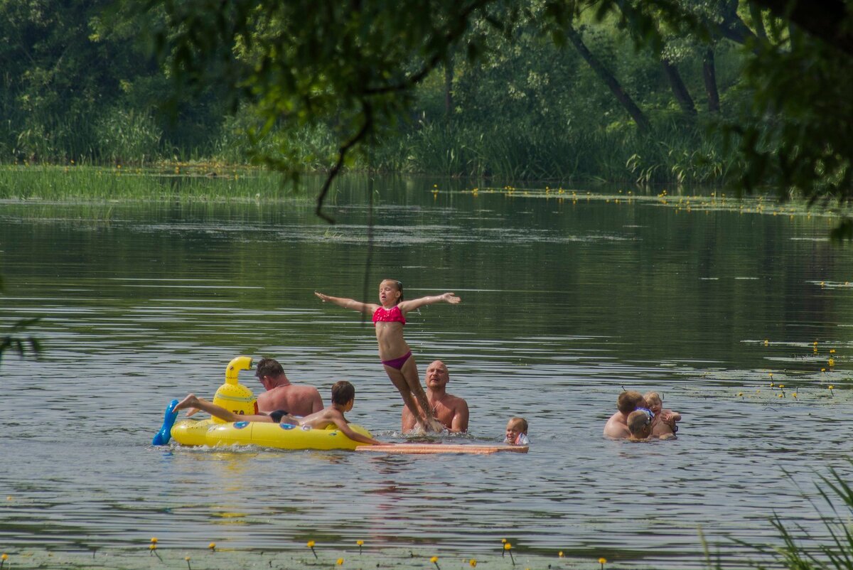 из всех разведанных мною пляже (в часовой доступности от дома) самым лучшим является конечно же поселок Ильинское - что прямо напротив Барвихи. Сюда приезжает на удивление мало не местного народа, при том что река здесь широкая, глубокая и со спокойным течение. На пляже в основном местные бабаули и мамули, сбежавшие с поливки огорода. Конечно же с детьми. Но эти дети растут на берегу реки, поэтому им можно - бегать, прыгать, купаться, плескаться. Но нельзя кидаться грязью нив людей нив уток. (просто уголок адекватных мамуль) в случае, если вам все таки покажется тесно на этом маленьком деревенском пляже, прямо за деревней начинается заповедник Лохин остров. Да тут нельзя жарить шашлыки! тьфу тьфу да и не надо это местным - они могут поесть шашлык на своем участке, они даже между кампаниями могут сбегать домой на кофе - счастливчики! они регулярно отправляют воду на анализ в СЭС, так как купаются там с мая по сентябрь ну и говорят, что пока тут не все так плохо, купаться мож