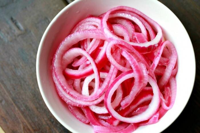 Доброго времени суток дорогие читатели. Сегодня приготовим обалденный маринованный лук к шашлыку. Нам потребуется. 3 красных салатных луковицы 100 грамм уксуса 3 столовых ложки сахара 1 столовая ложка соли Приготовление Лук нарезаем кольцами. Перекладываем в глубокую миску. Готовим маринад. На 500 мл воды добавляем 100 гр уксуса, 3 столовых ложки сахара и 1 столовую ложку соли, перемешиваем пока соль и сахар не растворяться. Заливаем лук и маринуем в течении 1 часа. Наш лучок готов. Надеюсь эта статья была для вас полезной, ставьте пальцы вверх, подписывайтесь на канал. Желаю всем приятного аппетита и хорошего настроения.