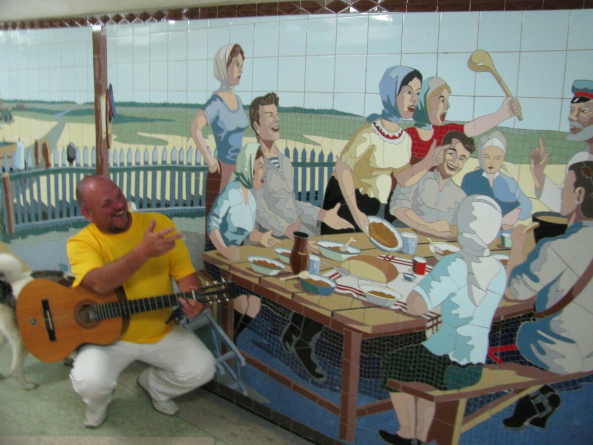 У Ник Ника в Ростове племянница. Вскоре она приехала и привезла с собой сына и мужа. Посидели немного на Дукате и увезли Ник Ника к себе. Мы же с Максом, вооружившись гитарой и полторашкой настойки на корне шиповника с острова Башмак, прихватив с собой Варну, поехали в центр Ростова. До остановки нас довез Валера, дальше сами, на автобусе.