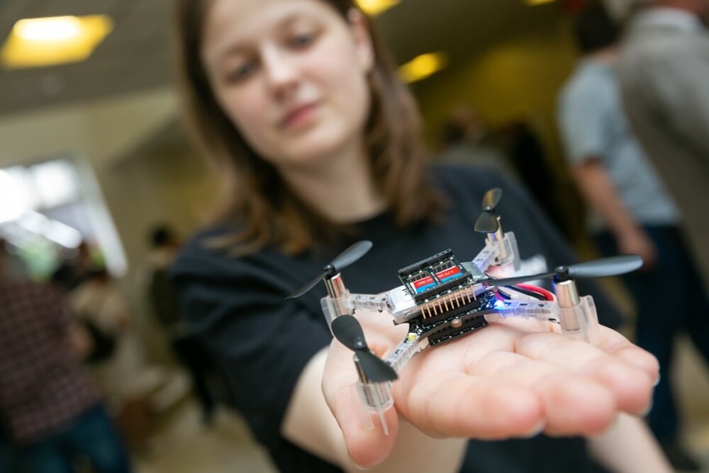 выставили на техношоу Гостями техношоу которого стали студенты Вышки, руководство университета, представители научных организаций и бизнеса, сотрудничающее с МИЭМ. Вышка пошла на «качественное изменение самой модели обучения», отметил на открытии техношоу ректор ВШЭ Ярослав Кузьминов. Вместо т