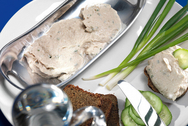 2. Переложить филе в чашу блендера, добавить сыр (диапазон — 170–200 грамм, все зависит от размера скумбрии и вкусовых предпочтений) и сливочный хрен (опять же — можно положить и 2 столовые ложки, и даже больше). Выжать сок лимона, поперчить. Пропустить через блендер.