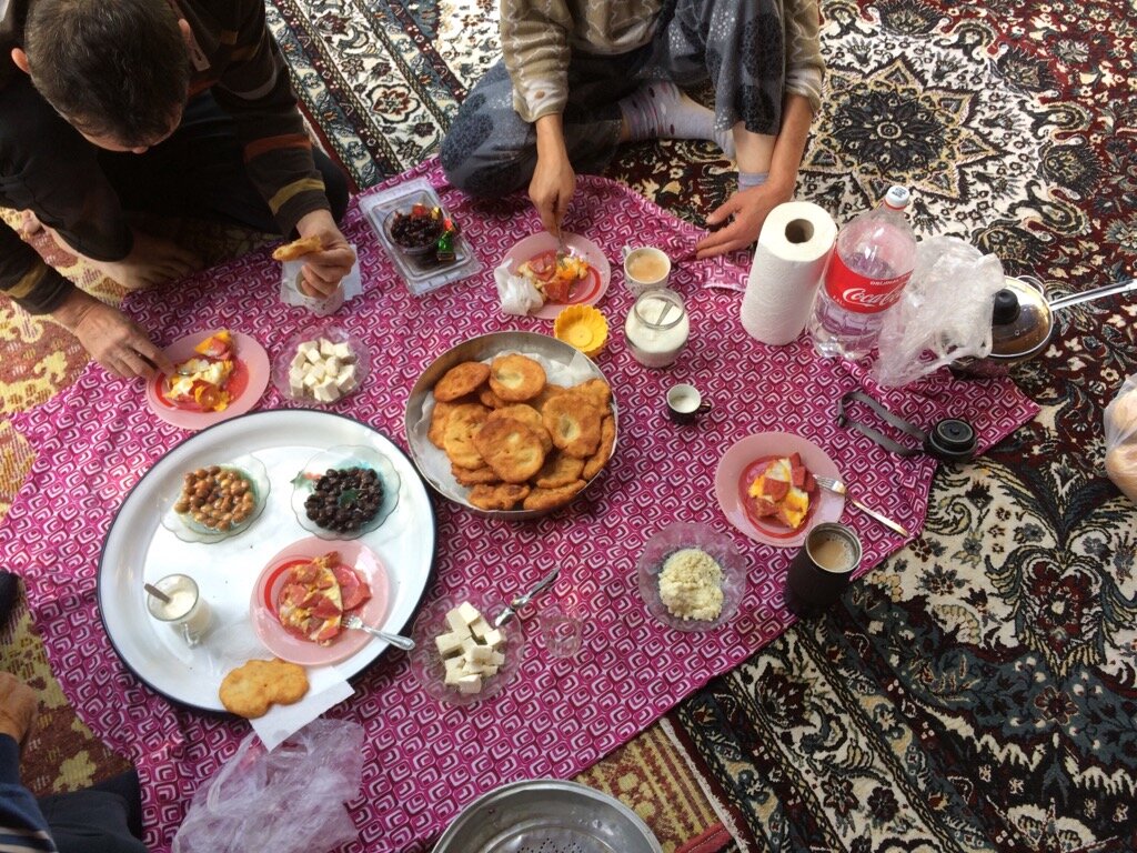 Просыпались, 7:18. Завтракали очень сытно.