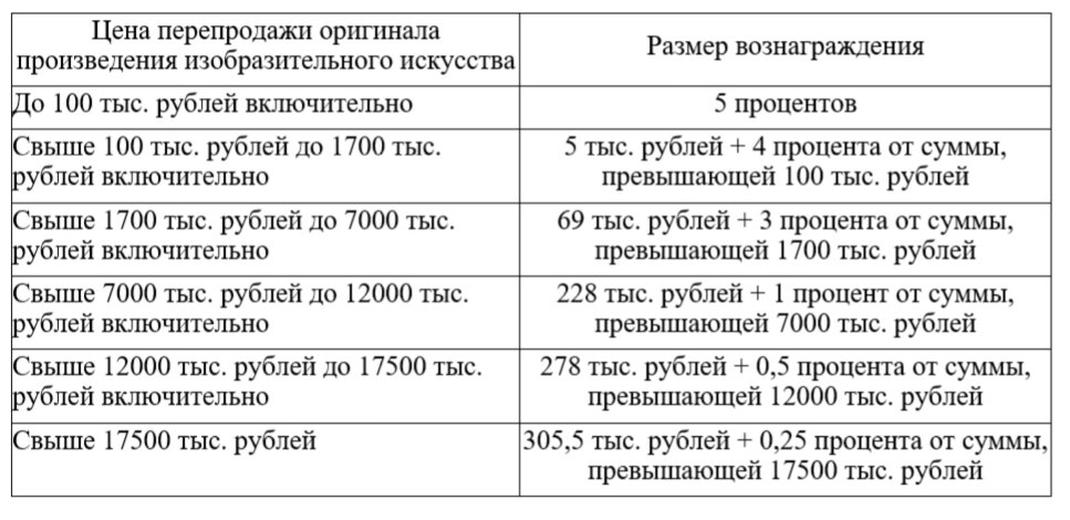 Размер процента от перепродажи произведений изобразительного искусства, который вы вправе требовать, установлен законом: