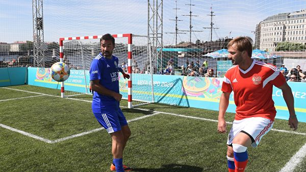 12 июня в Санкт-Петербурге прошел матч звезд футбола, в которой встречались звезды российского и сборная "Послов УЕФА". Матч прошел во время празднования Дня России. И так совпало, что игра состоялась ровно за один год до начала чемпионата Европы - 2020. Состав сборной "Звезд России" выглядел следующим образом: Состав сборной "Послов УЕФА" выглядел следующим образом: Основное время матча победителя не выявило, игра завершилась со счетом 16:16. В серии послематчевых пенальти более удачными оказались "Звезды России" 4:3. Лучшим бомбардиром в матче стал Дмитрий Сычев, записавший на свой счет 7 мячей.