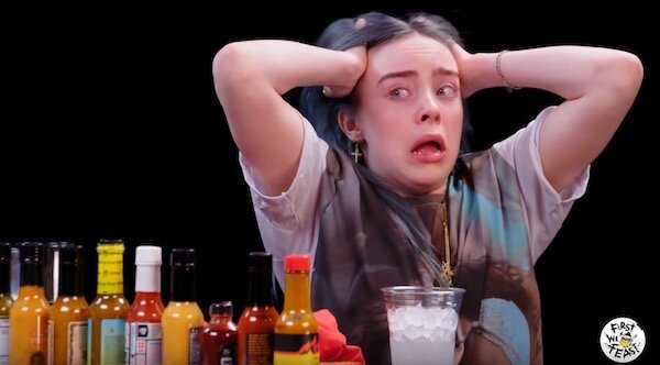 Рады приветствовать Вас на шоу Hot Ones в русской озвучке! Шоу с горячими вопросами и еще более горячими крылышками. Сегодня у нас в гостях Билли Айлиш и 10 острейших вегетарианских наггетсов. Билли Айлиш (2001 года рождения) - американская певица и автор песен. Стала известна в 2016 году, после выпуска дебютного сингла "Ocean Eyes" на музыкальном сервисе SoundCloud. Она привлекла внимание звукозаписывающих лейблов Darkroom и Interscope Records, в будущем переиздав компазицию "Ocean Eyes" Первый её альбом под названием "Don’t Smile At Me" был выпущен 11 августа 2017 года. Он достиг топ-15 в США, Великобритании, Канаде и Австралии. Айлиш также записала вместе с американским певцом Khalid сингл "Lovely", который был выпущен в апреле 2018 года и добавлен в саундтрек ко второму сезону телесериала "13 причин почему". 29 марта 2019 года Билли выпустила свой первый проффесиональный студийный альбом "When We All Fall Asleep, Where Do We Go". Альбом быстро достиг первого места в хит пар